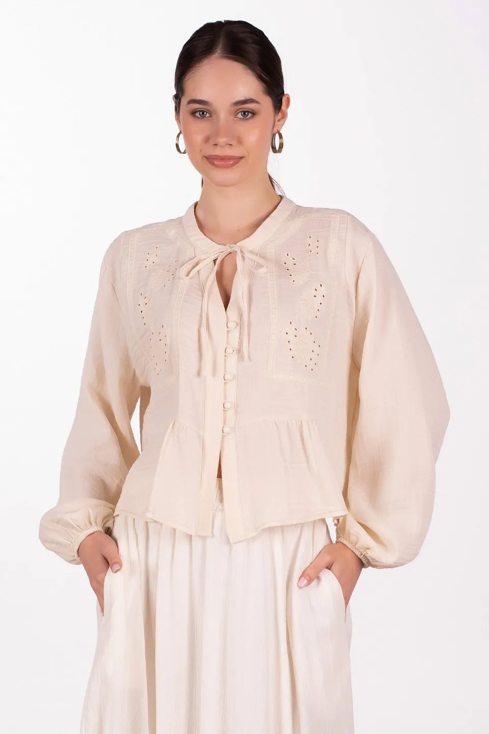 بلوزة تريكو بياقة بيتر بان وتفصيل فيونكة بأزرار وهمية للنساء - Beyond Store