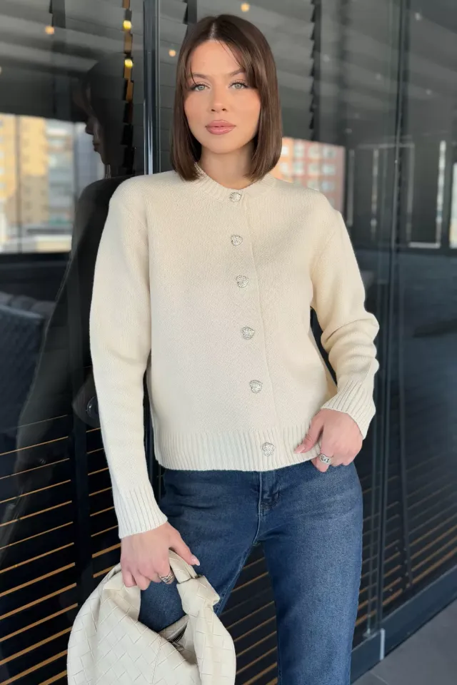 كارديغان تريكو نسائي بياقة بولو مع تفصيل جلد صناعي وسحاب أمامي لستايل يومي عصري ومريح.