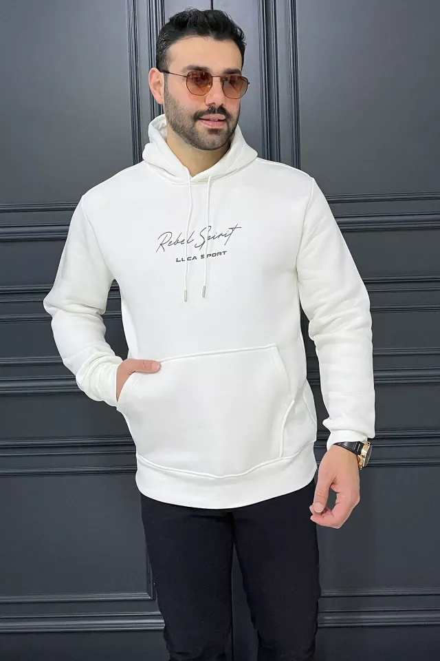 سويت شيرت رجالي بياقة دائرية وأكمام طويلة مع طبعة حروف أمامية أنيقة، مصنوع من قماش ناعم ومريح، يوفر الراحة ومظهرًا عصريًا كاجوال للإطلالات اليومية.