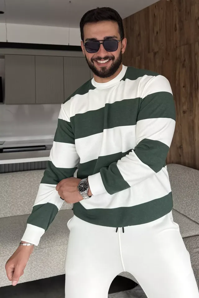 سويت شيرت رجالي بياقة دائرية وأكمام طويلة مع طبعة حروف عصرية، مصنوع من قماش ناعم ومريح، يوفر الراحة ومظهرًا عصريًا للإطلالات اليومية الكاجوال في جميع الفصول.