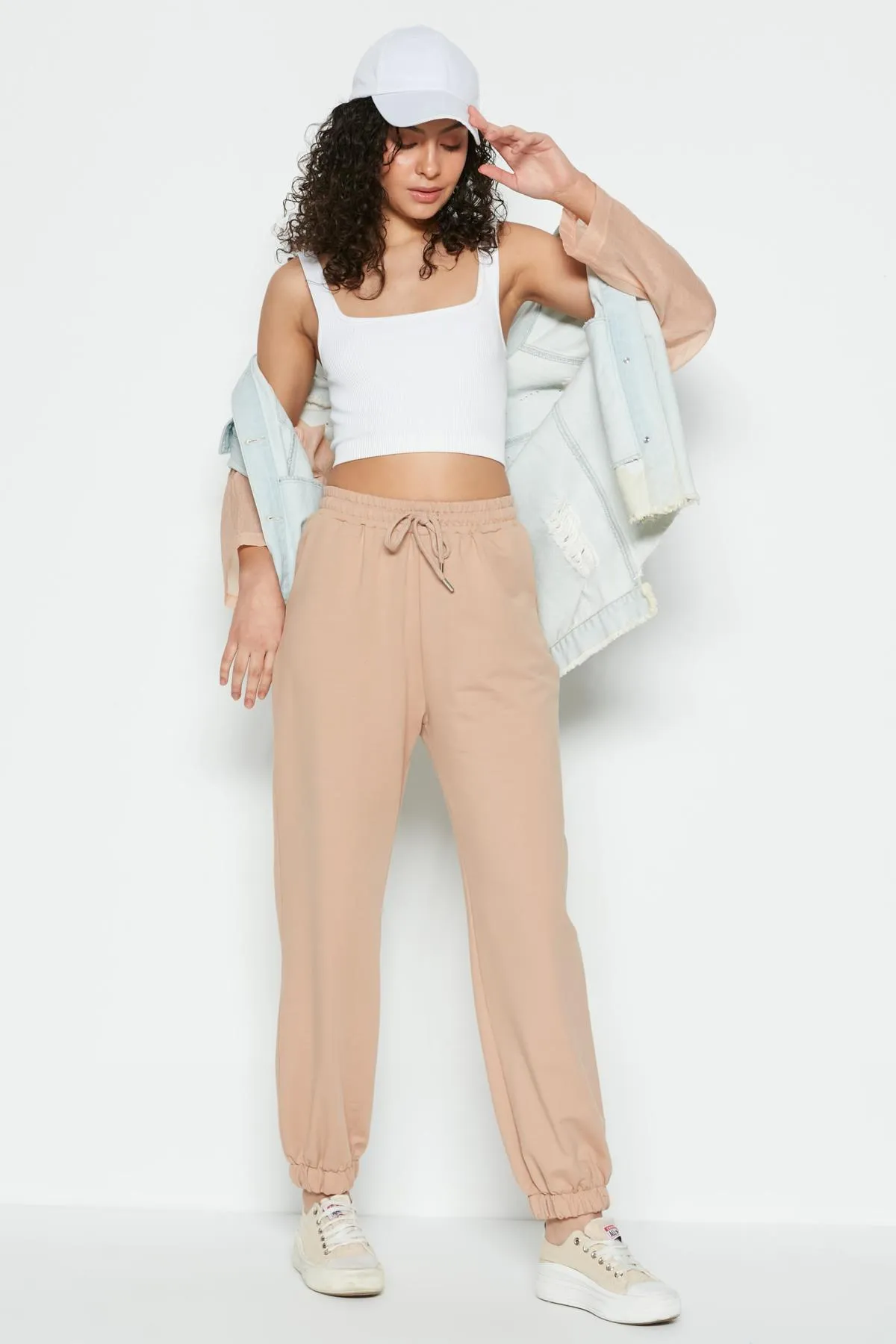 بنطال نسائي رياضي بخصر مطاطي وساق بالازو مع طيات ناعمة لستايل يومي مريح وعصري.
