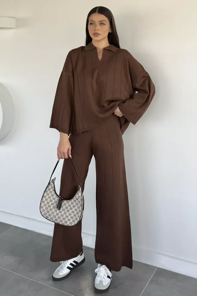 طقم تريكو مخطط بهودي بسحّاب وبنطال - Beyond Store