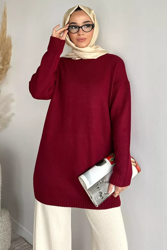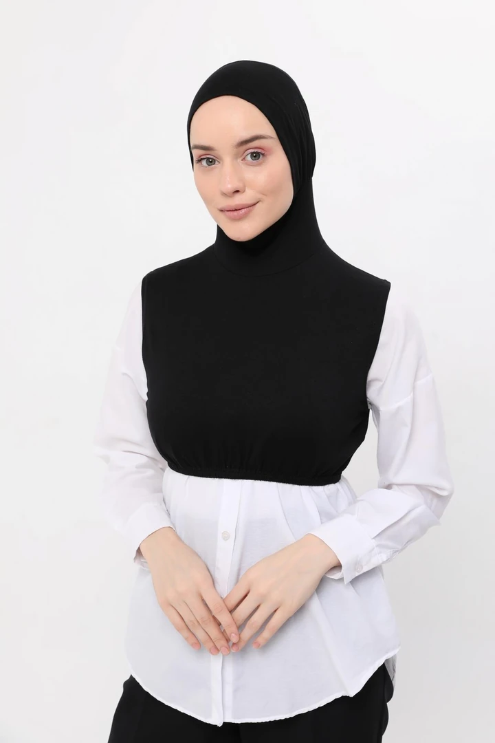 تونيك نسائي محبوك بياقة دائرية وتصميم أنيق ثنائي اللون. مصنوع من قماش ناعم وقابل للتنفس، يوفر الدفء وسهولة الحركة، مثالي للاستخدام اليومي أو للأزياء المحتشمة.