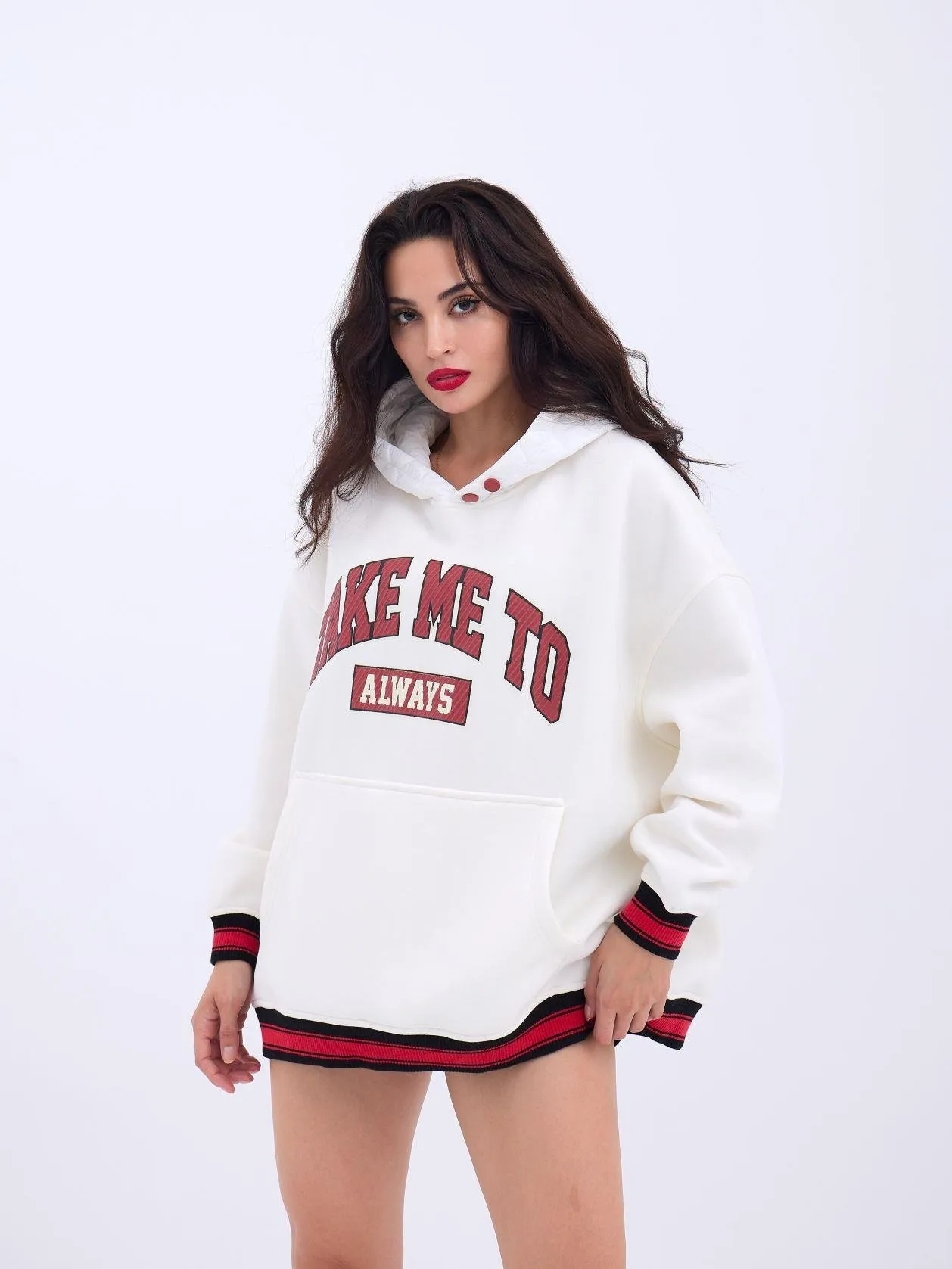 سويت شيرت نسائي بياقة دائرية بطباعة أمامية وقصة مريحة لإطلالة شتوية عصرية ومريحة.