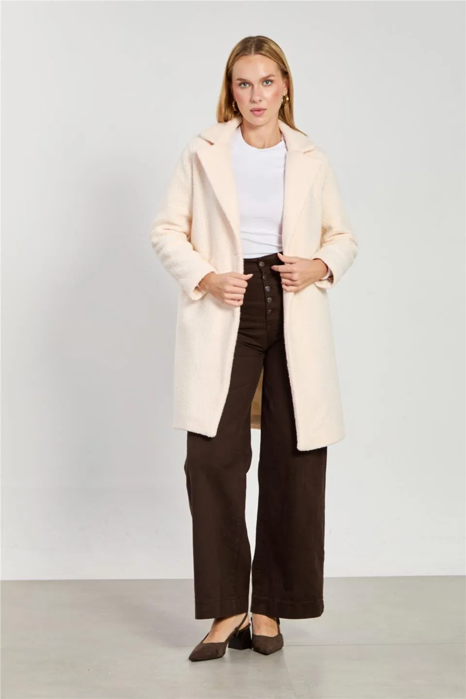 جاكيت فروي بياقة عالية للنساء - Beyond Store