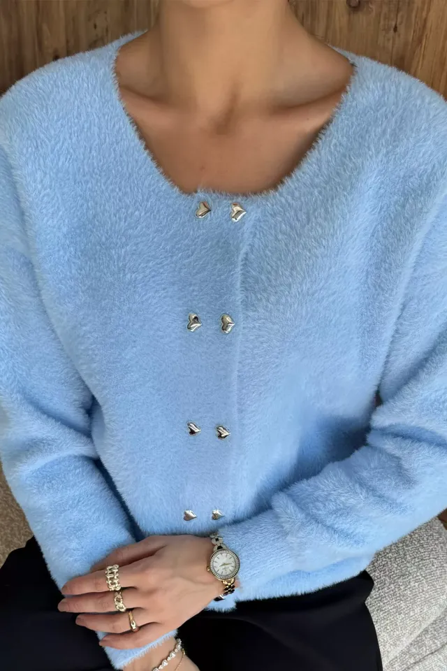 كارديغان تريكو نسائي مريح بنمط محبوك وتفاصيل أزرار أمامية لستايل يومي خفيف وعصري.