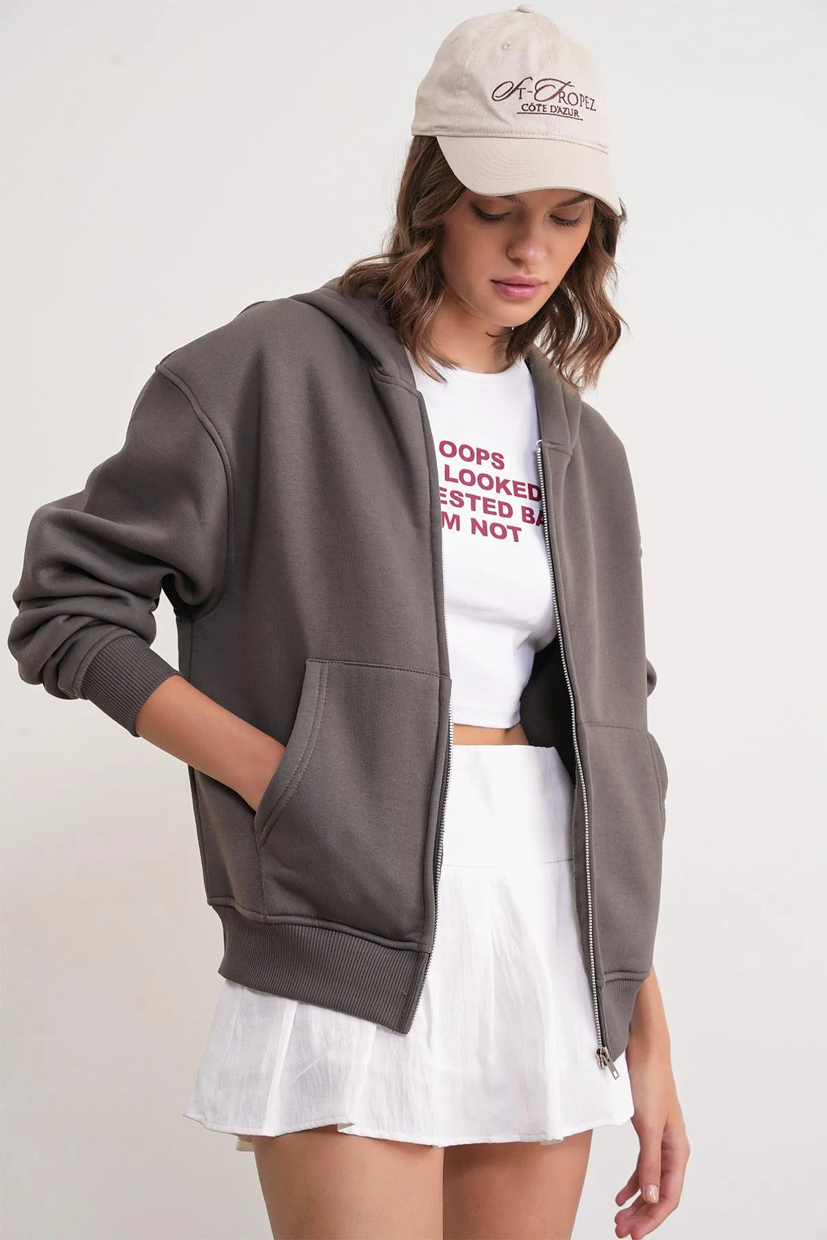 سويت شيرت نسائي بسحاب وغطاء رأس - Beyond Store