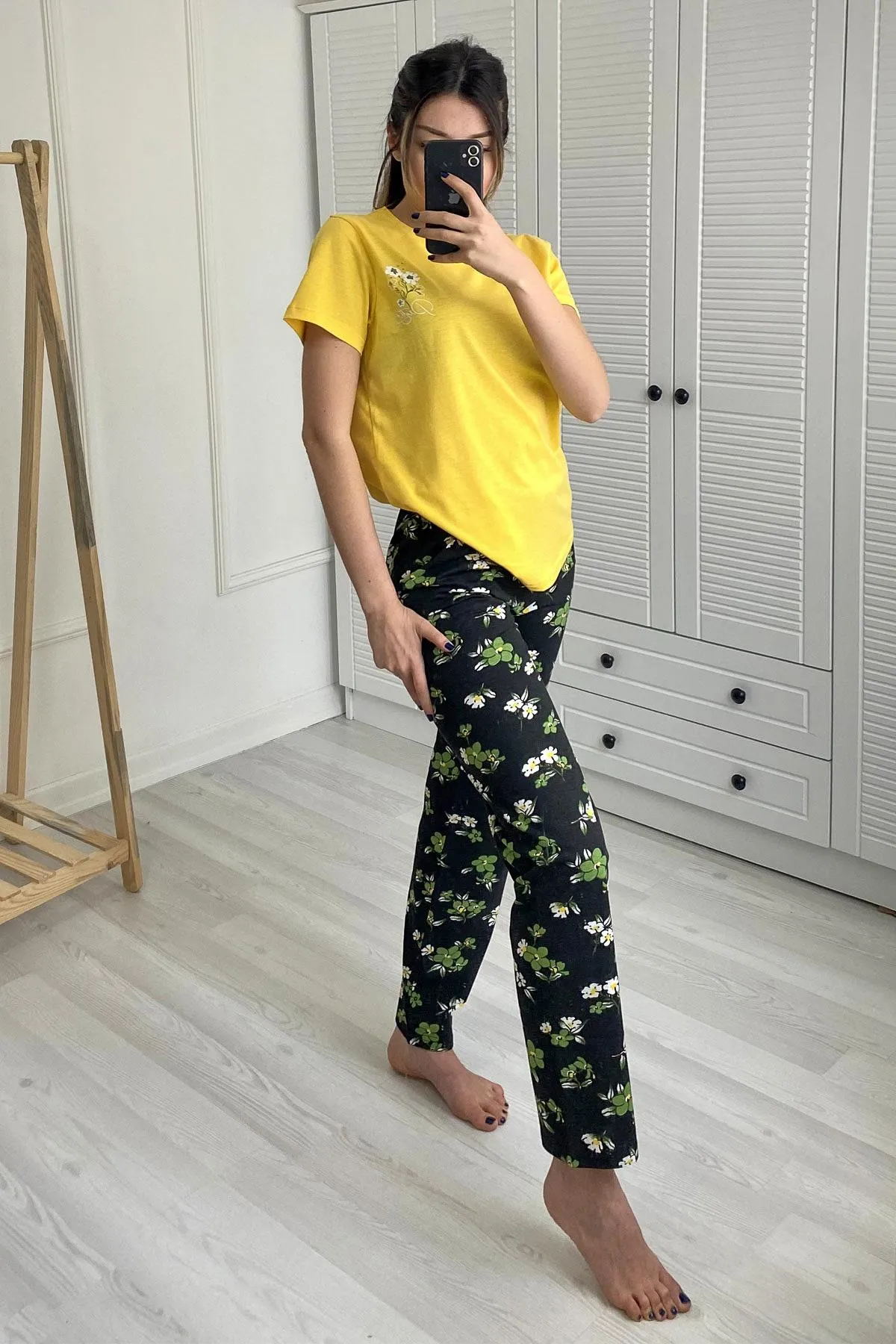 بنطلون بيجاما نسائي مريح بنقشة مطبوعة وخصر مرن بقصة مريحة مثالي للراحة اليومية ولوك نوم هادئ.