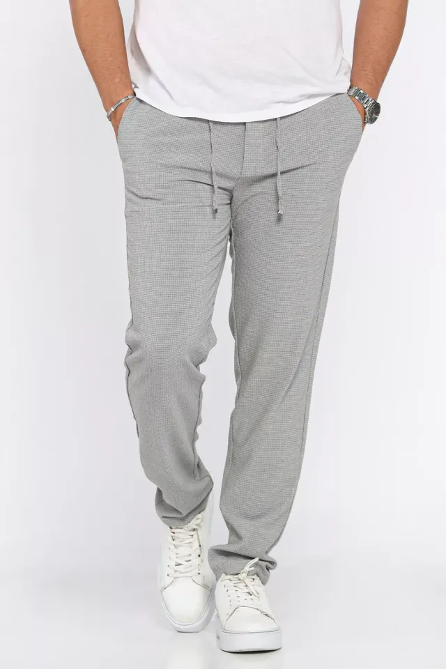 بنطال رياضي رجالي بخصر مطاطي وتفاصيل شريط جانبي، مصنوع من 75% قطن، 20% بوليستر، و5% إيلاستين. مصمم للارتداء اليومي مع راحة ومرونة ولمسة رياضية.