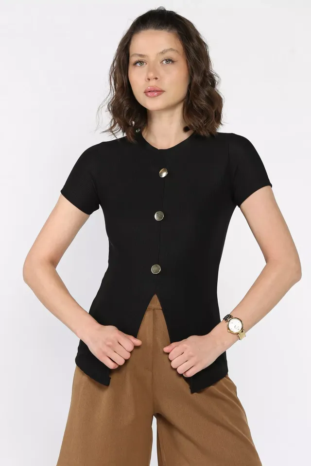 بلوزة نسائية بياقة V من قماش دالغيتش بنقشة منقوشة ناعمة بقصة مريحة لإطلالات يومية أنيقة.