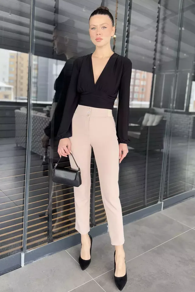 بنطال فيسكون مستقيم بخصر عالي وأربطة جانبية متقاطعة للنساء - Beyond Store