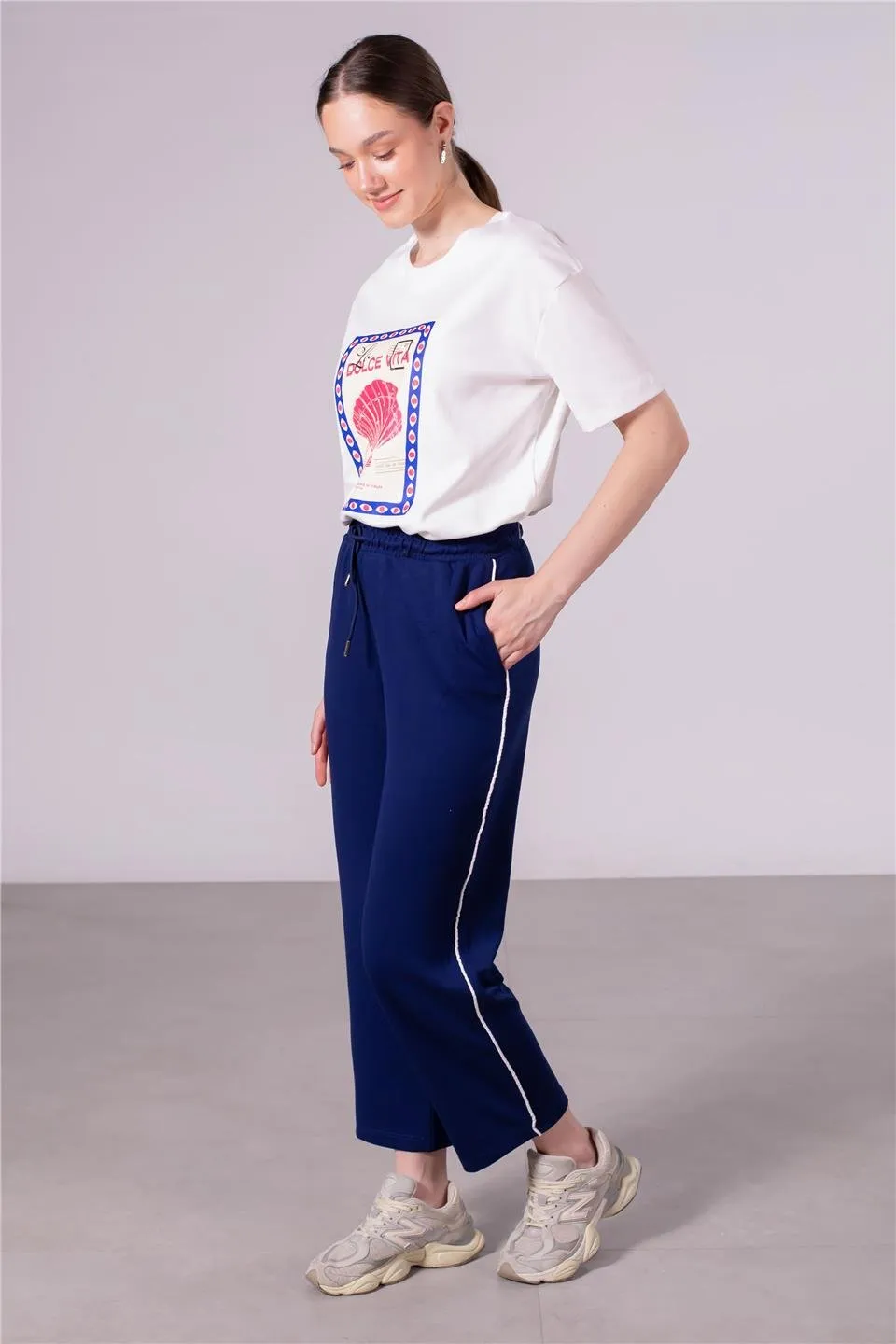 بنطال فيسكون مستقيم بخصر عالي وأربطة جانبية متقاطعة للنساء