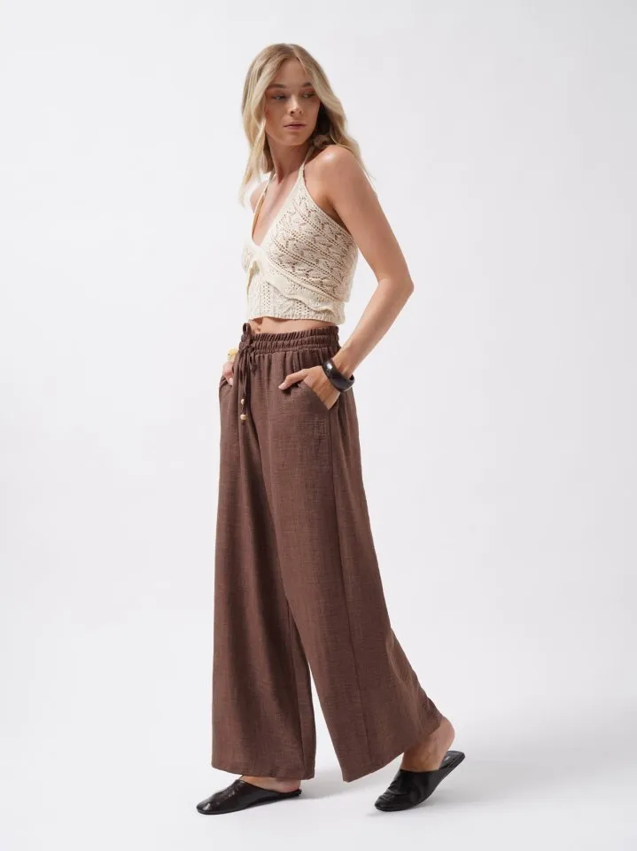 بنطال فيسكون مستقيم بخصر عالي وأربطة جانبية متقاطعة للنساء