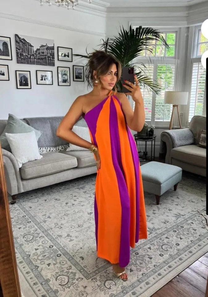 فستان نسائي طويل من قماش سوبرم بياقة ملفوفة بنقشة منقوشة وأكمام واسعة لإطلالة شتوية أنيقة وعصرية.