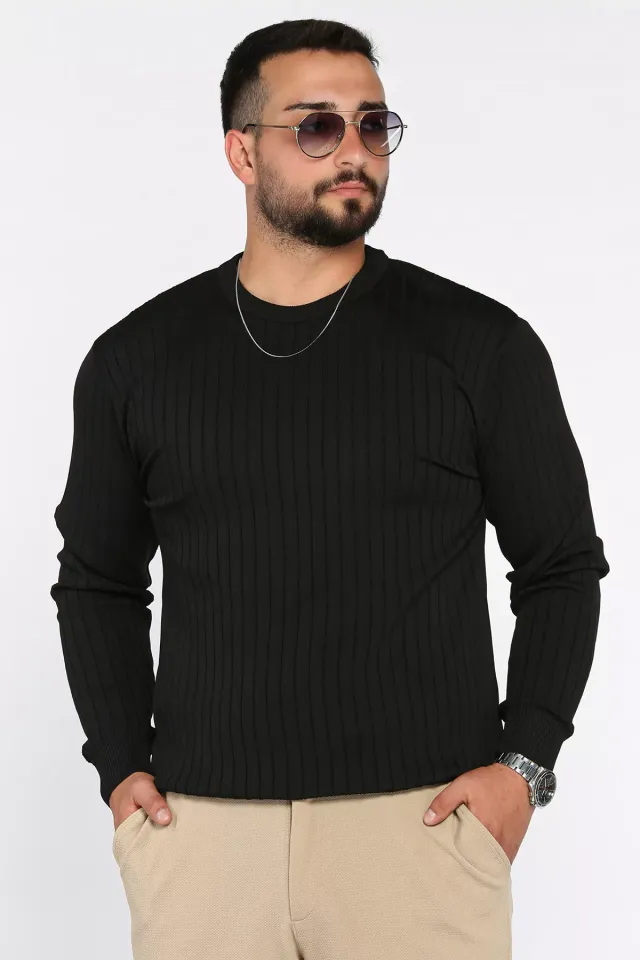 كنزة رجالية مضلعة بأكمام طويلة وقصّة مريحة مع ياقة بولو، بتصميم متوازن وبنية نظيفة تناسب الارتداء اليومي والإطلالات الكاجوال.