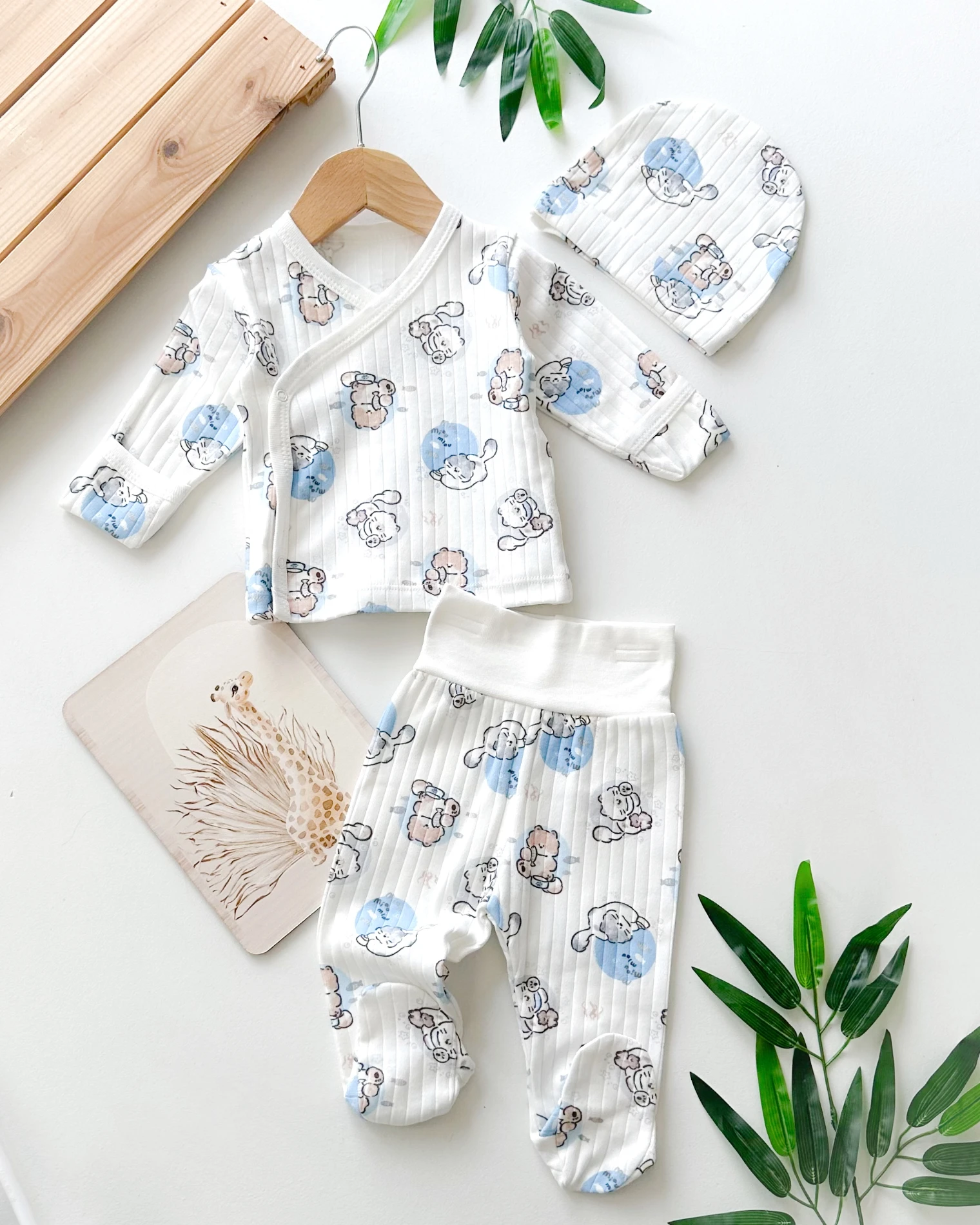 طقم سالوبيت جينز مع تيشيرت بأكمام طويلة مزين بتفاصيل أزرار، مصنوع من قماش ناعم ومريح على بشرة الأولاد الرضع، تصميم عملي وأنيق لجميع الاستخدامات اليومية وسهل الغسل على 30° مئوية.