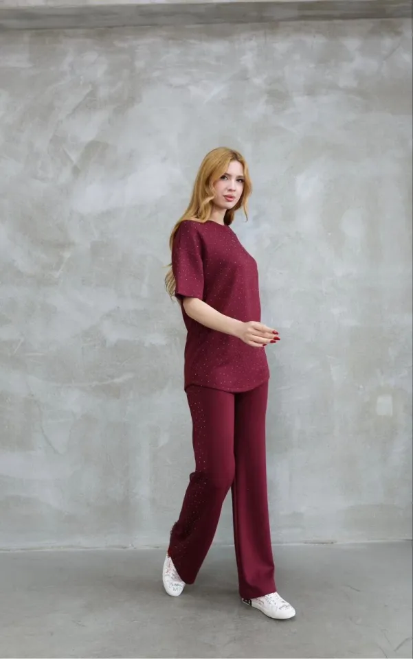 طقم تريكو بكارديغان مطرّز وبنطال - Beyond Store