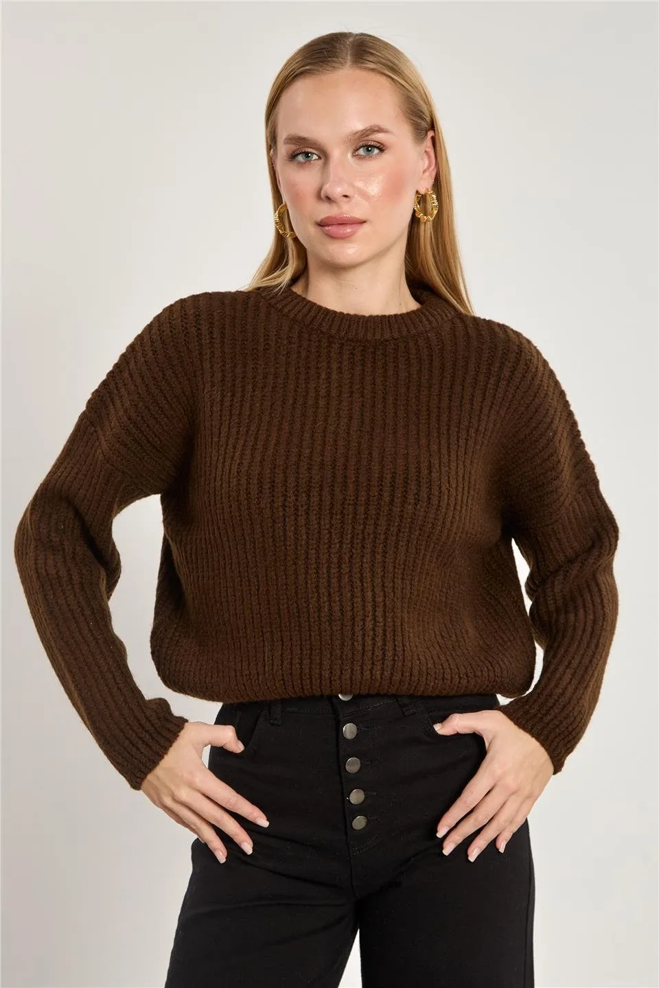 سويتر محبوك أنيق بياقة بولو مزين بوشاح متناسق وبروش راقٍ، يتميز بخامته الناعمة والمريحة، ويمنح إطلالة عصرية مناسبة للاستخدام اليومي بأسلوب راقٍ وجذاب.