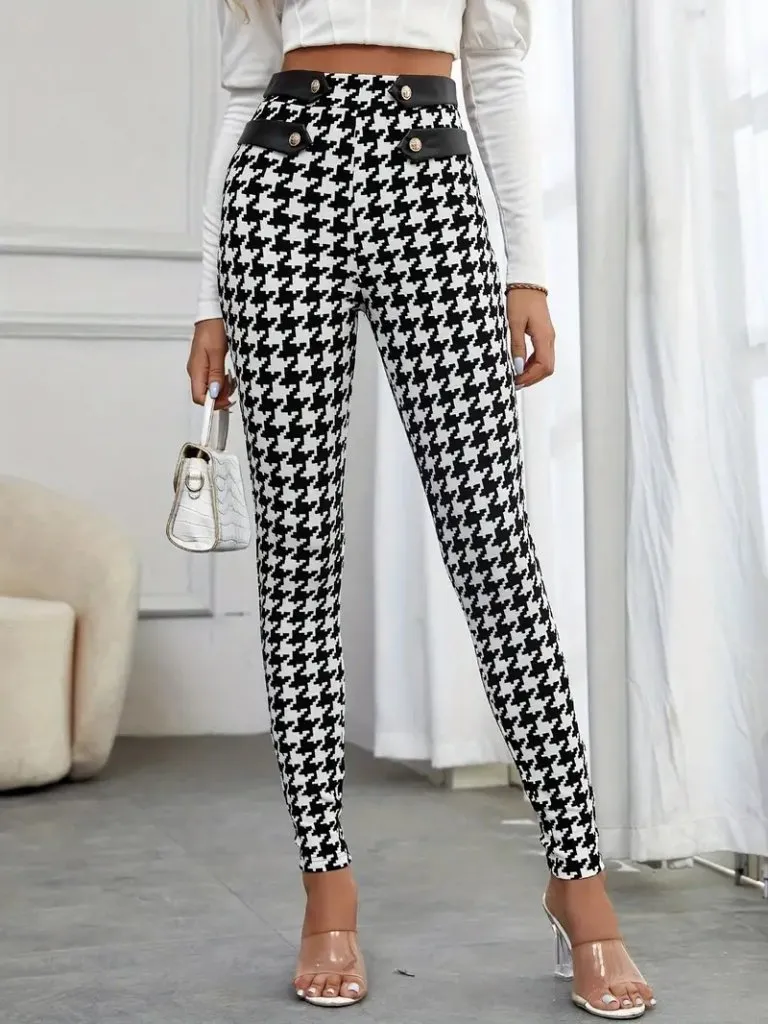 بنطلون منقوش واسع الساق بخصر مرتفع للنساء - Beyond Store