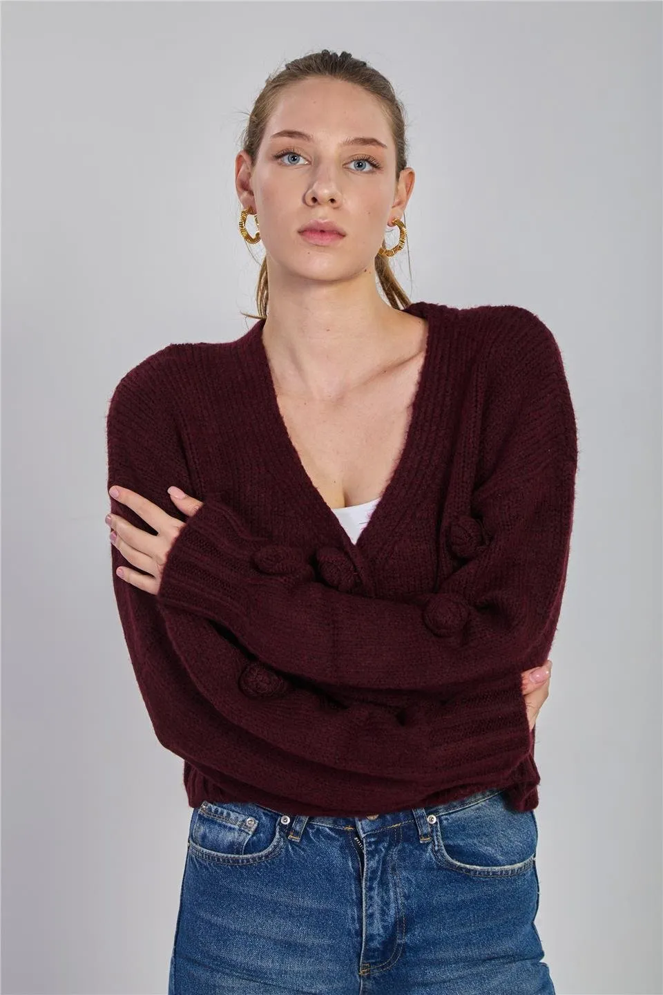 كارديجان محبوك بأزرار أمامية للنساء
