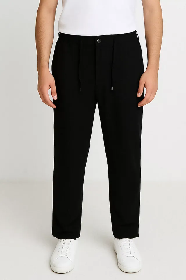 بنطال رياضي رجالي كاجوال سادة بقصة عادية خصر مطاطي برباط - Beyond Store