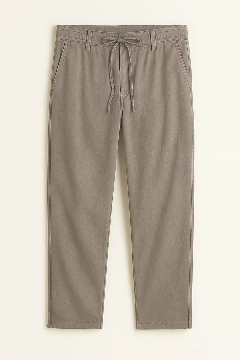 بنطال رجالي كاجوال سادة بقصة مستقيمة وخصر مطاطي برباط - Beyond Store