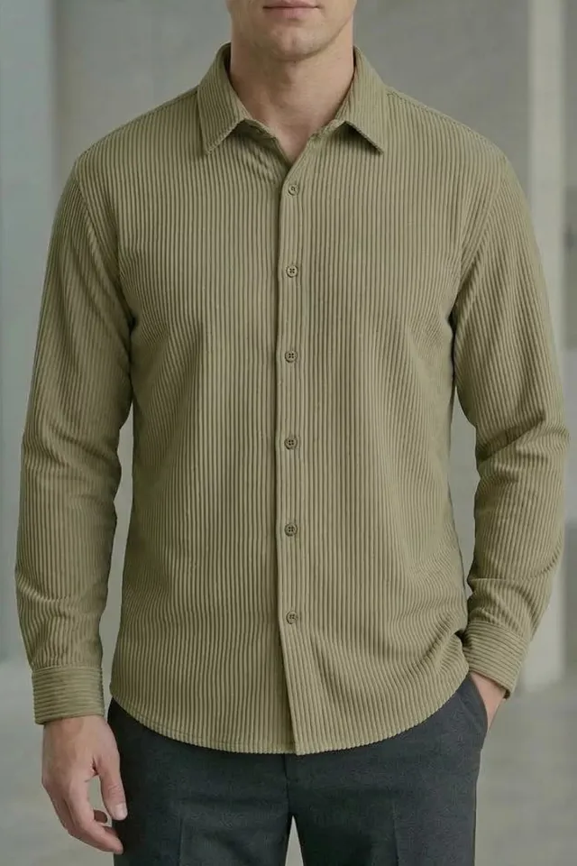 قميص رجالي بأكمام طويلة وأكتاف منسدلة وقصة مريحة مع أزرار