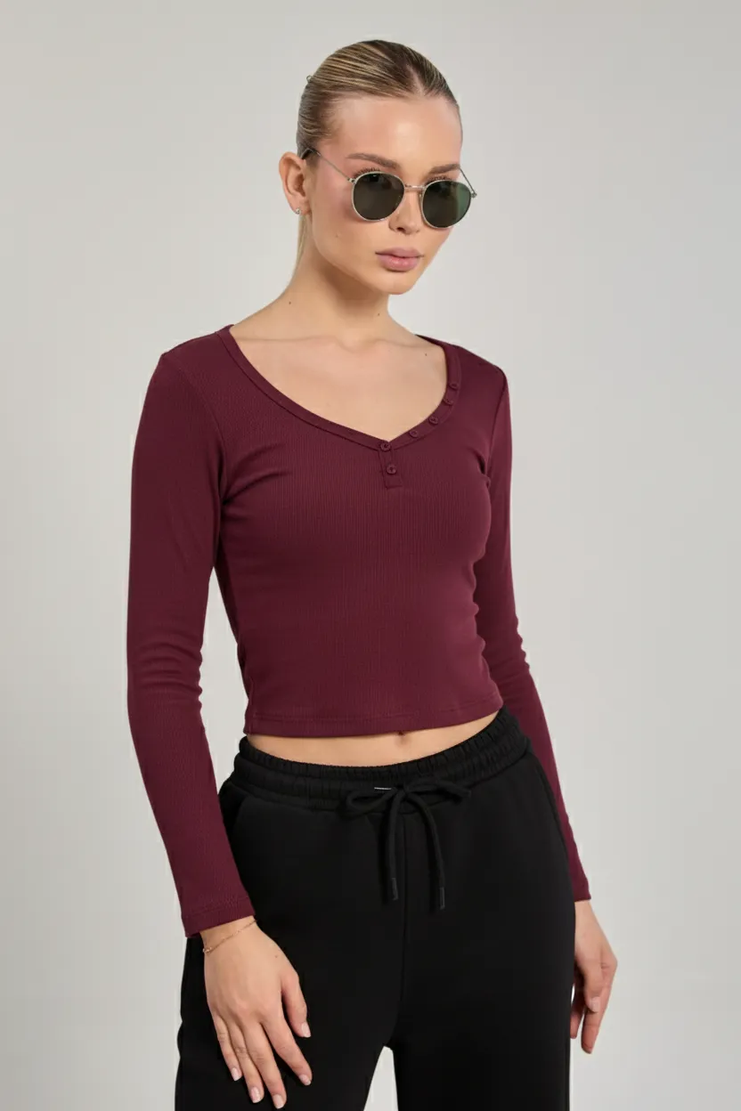 بودي بأكمام طويلة وتفصيل أزرار كبس