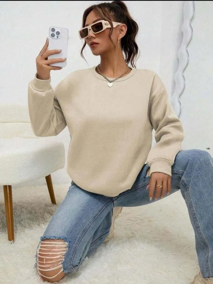 سويت شيرت مريح بأكمام طويلة وياقة دائرية مزين بنقشة قلوب لطيفة تضيف لمسة أنثوية ناعمة إلى الإطلالة اليومية. مصنوع من قماش مريح يسمح بالتهوية، ليكون خيارًا مثاليًا للارتداء اليومي خلال الموسم.