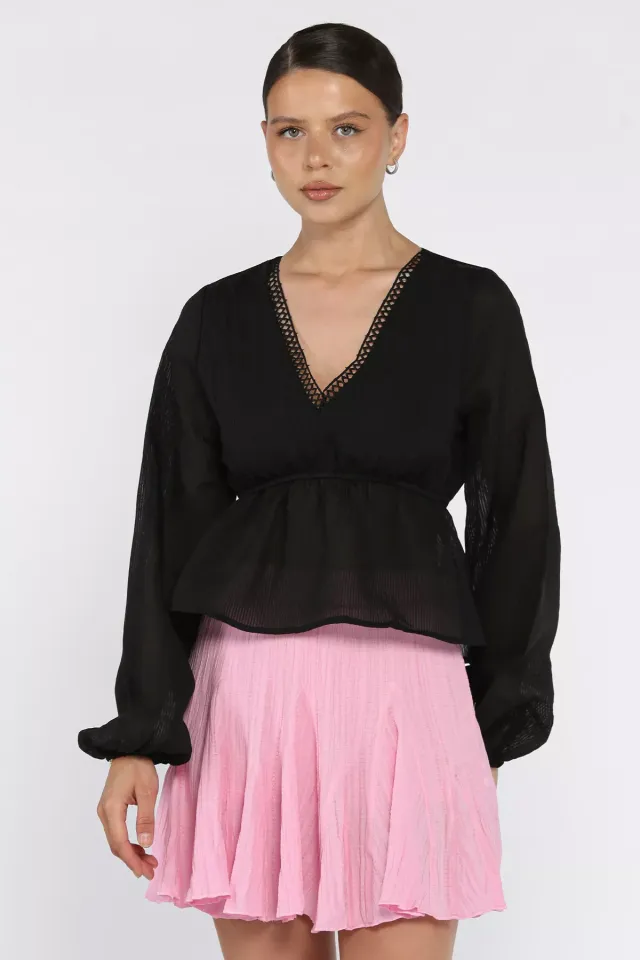 بلوزة نسائية بأكمام طويلة مع سحاب أمامي وجيوب عملية، تمنح إطلالة عصرية وعملية، مصنوعة من خامة مضلعة ناعمة وخفيفة، مثالية للإطلالات اليومية أو الطبقية.
