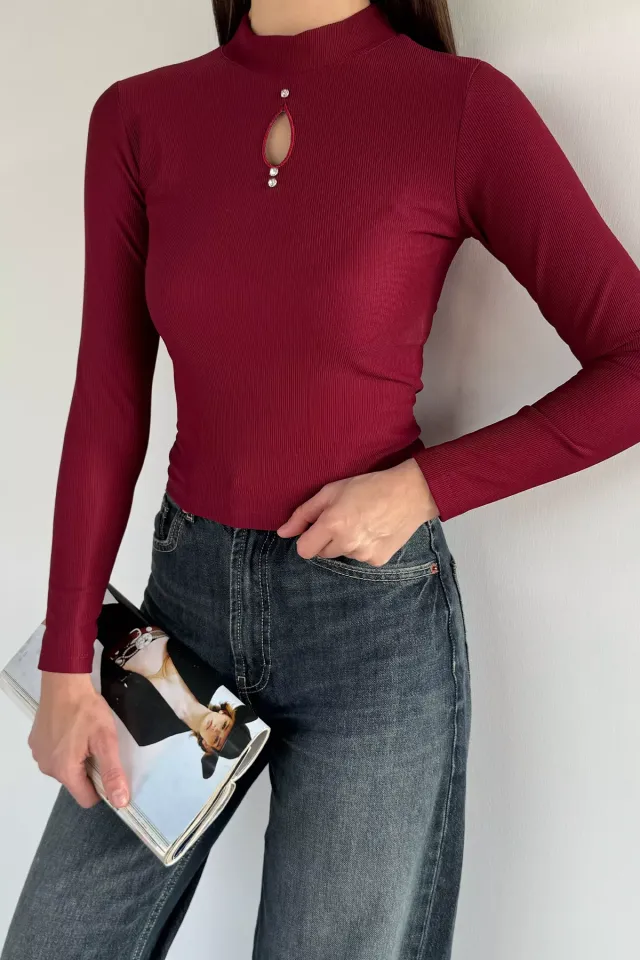 بلوزة نسائية بأكمام طويلة و ياقة على شكل حرف V - Beyond Store