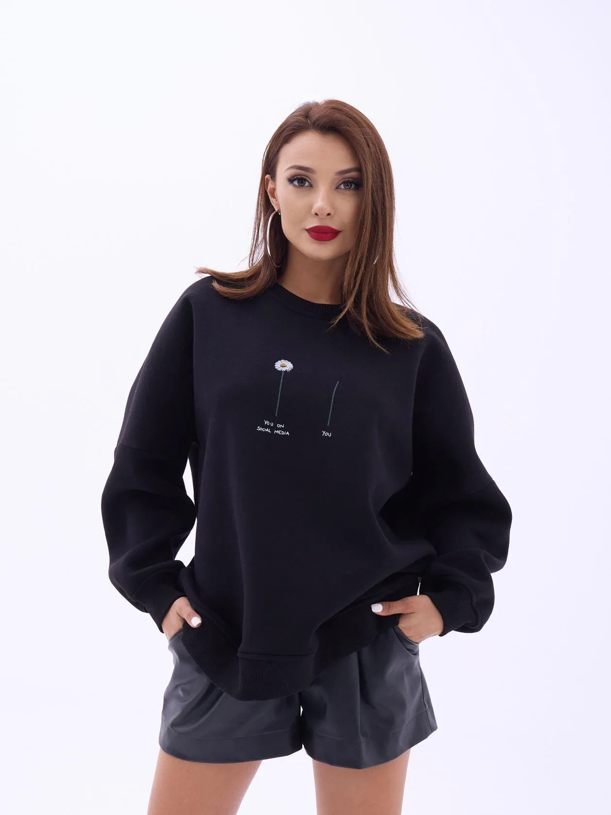 بلوزة نسائية بأكمام طويلة وياقة دائرية مزينة بطبعة ناعمة، تمنحك إطلالة مريحة وعصرية مناسبة للاستخدام اليومي.
