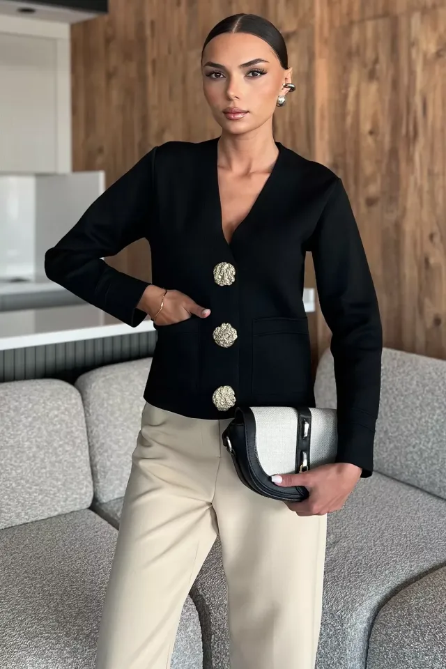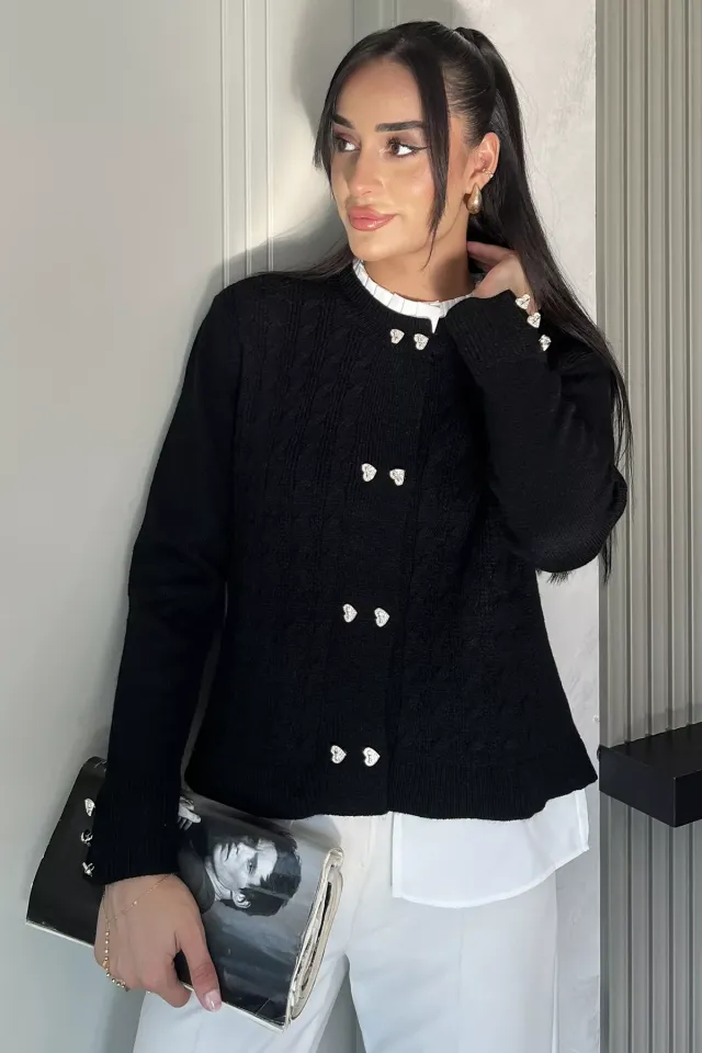 الموديل ترتدي مقاس S/36 – الطول ١٧٠ سم، الصدر ٨٦ سم، الخصر ٦٧ سم، الورك ٩٢ سم