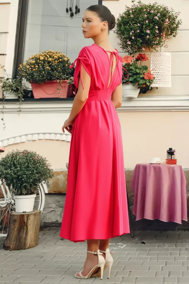 فستان دنيم سترابلس بتفصيل زر للنساء