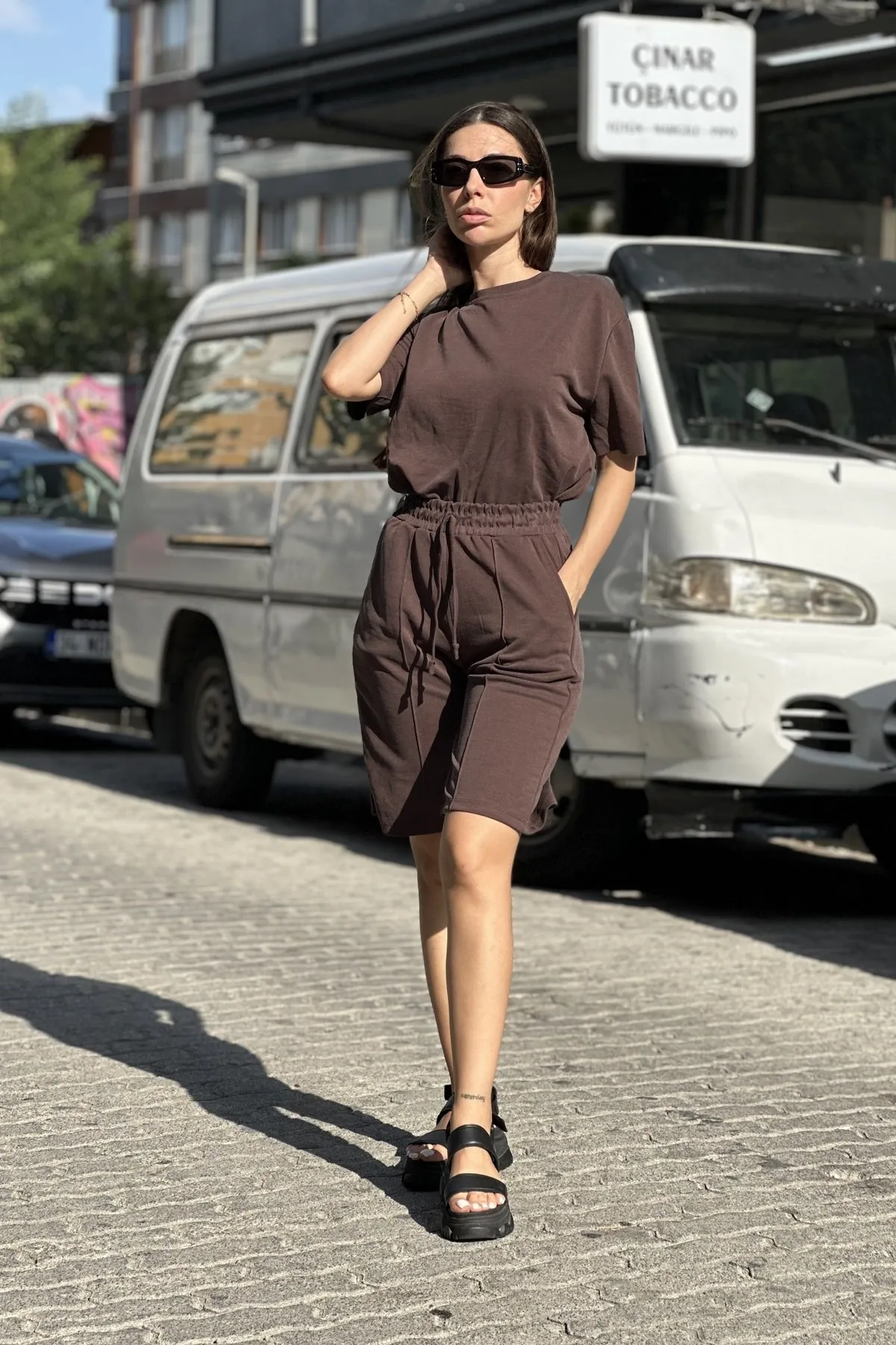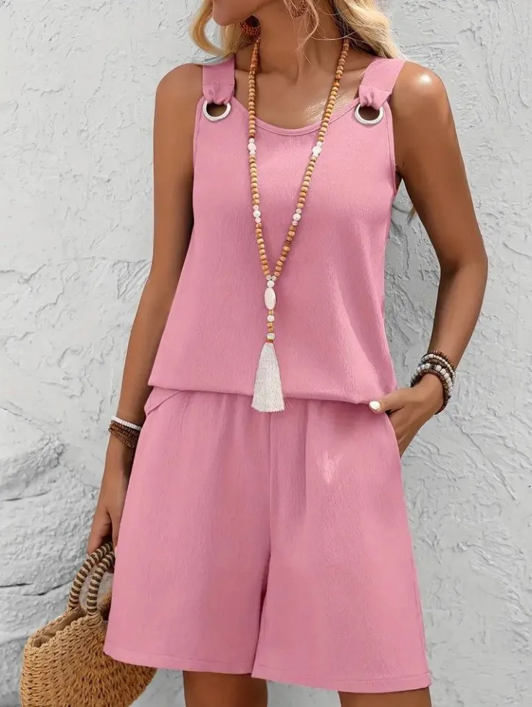 طقم يضم يليك بقصة نظيفة وشورت عالي الخصر بتفاصيل بسيطة تمنحك إطلالة صيفية أنيقة وسهلة.