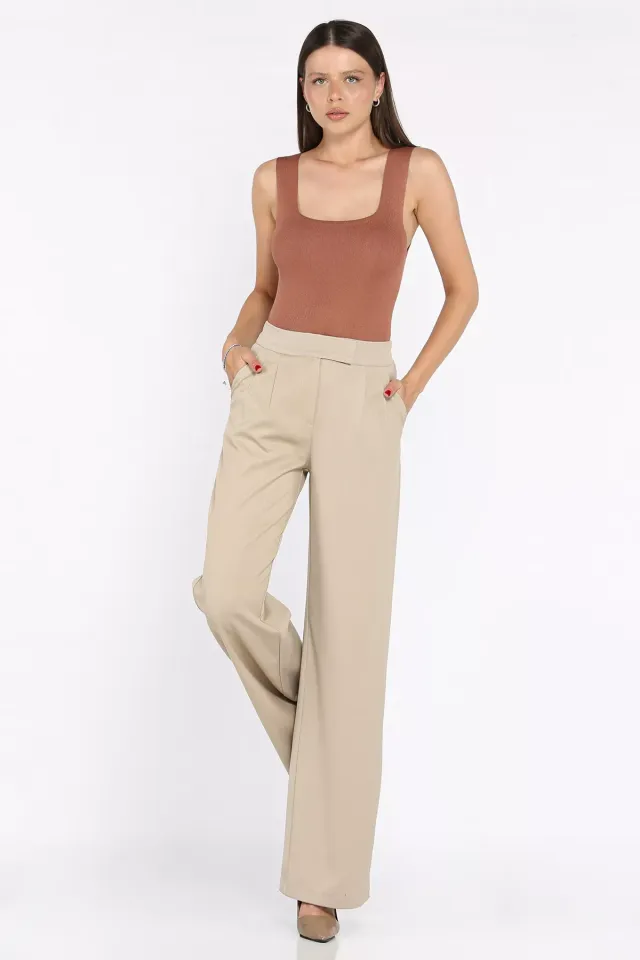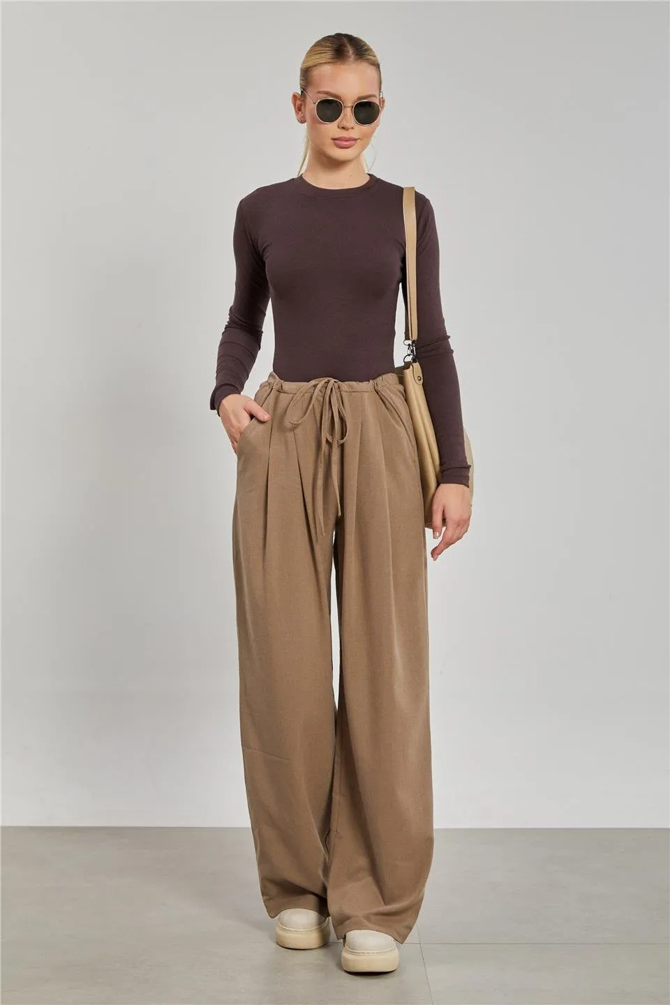 بنطلون كتان نسائي واسع الساق بخصر مطاطي وجيبين عمليين يمنحان راحة وانسيابية طوال اليوم. قماش خفيف وناعم مناسب للأيام الدافئة، تصميم عصري يسهل تنسيقه لإطلالة يومية أنيقة.