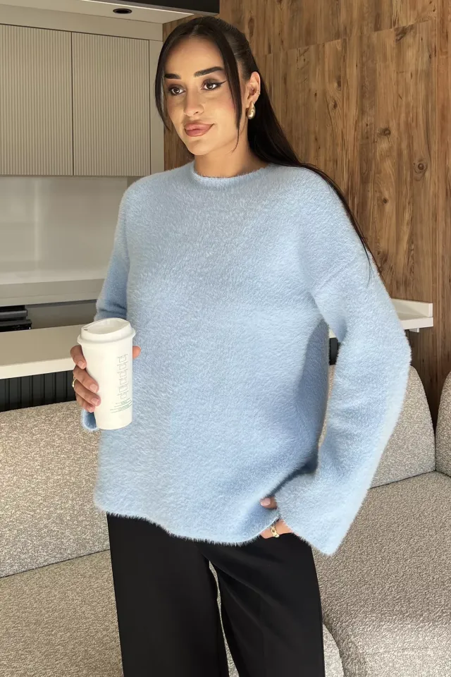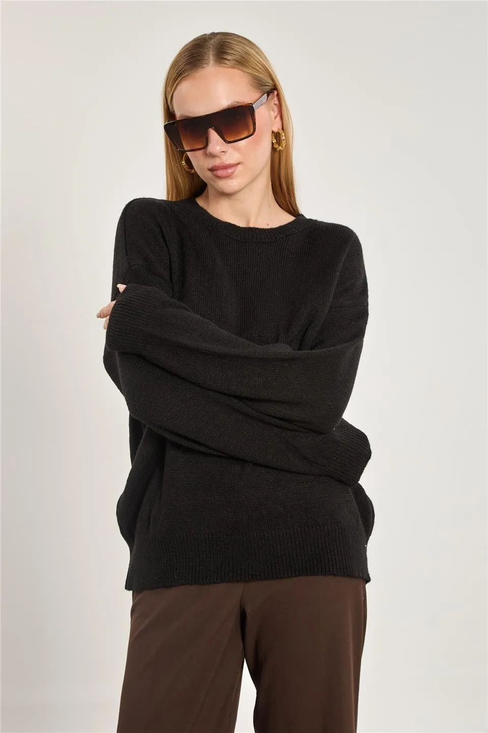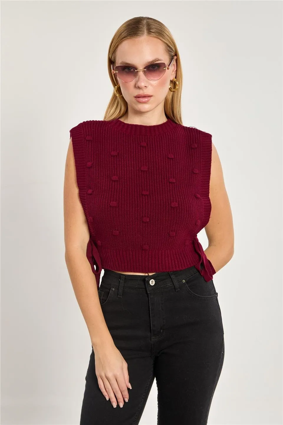 كنزة تريكو كروب بياقة قارب وكمّات بكشكش ونقشة مخرّمة لستايل يومي عصري وكيوت.