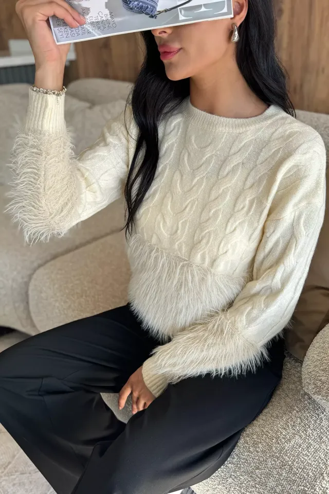 كنزة تريكو بطبقة كتف وشريط لوني للنساء - Beyond Store