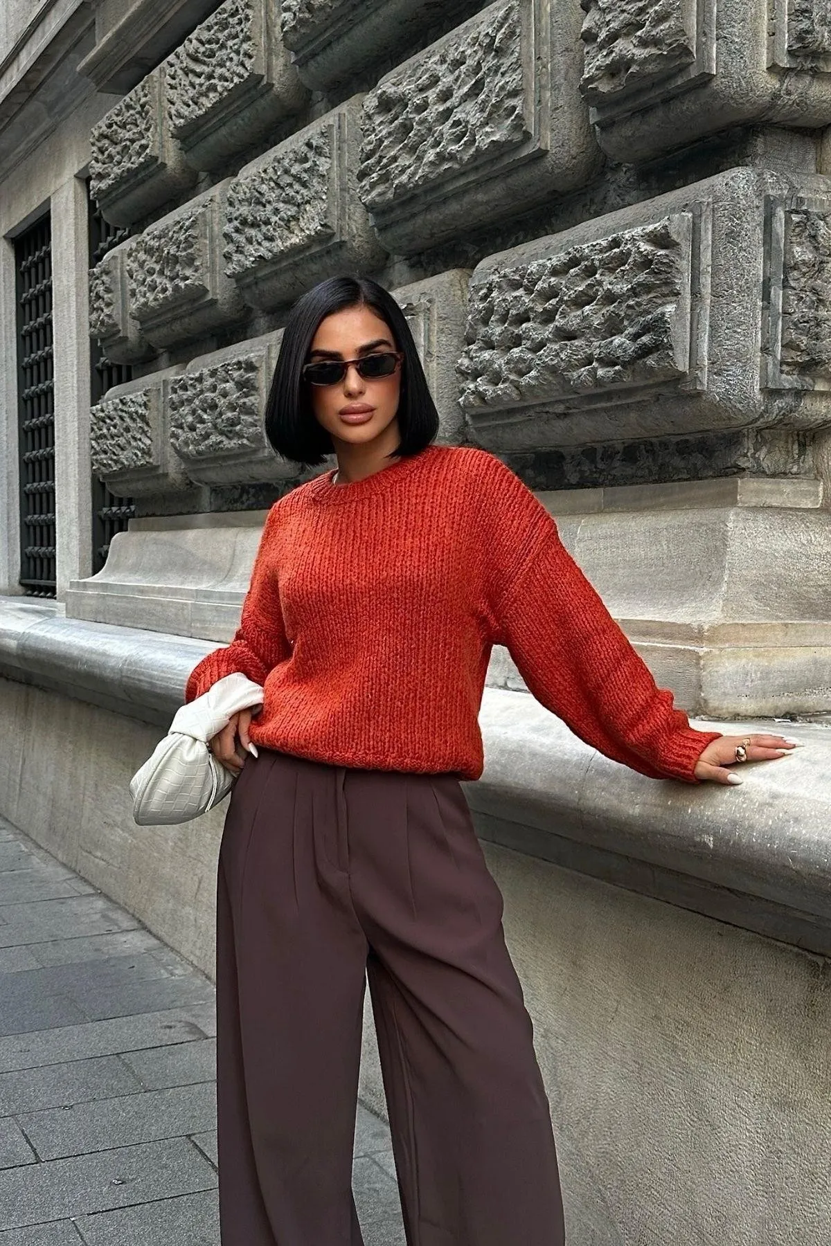 كنزة تريكو بقصة مريحة مع طبقة كتف وشريط لوني تعطيك ستايل يومي أنيق ومريح بلمسة عصرية.