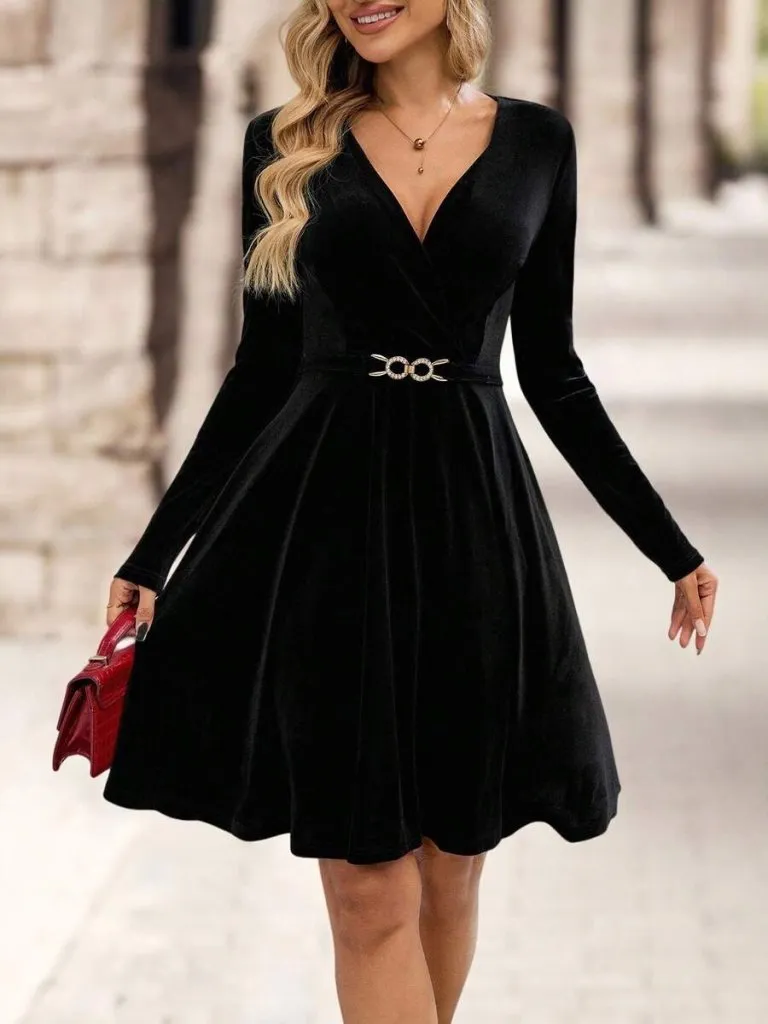 كتف واحد – تفاصيل حجر – خصر محدد – شق جانبي – قماش مرن