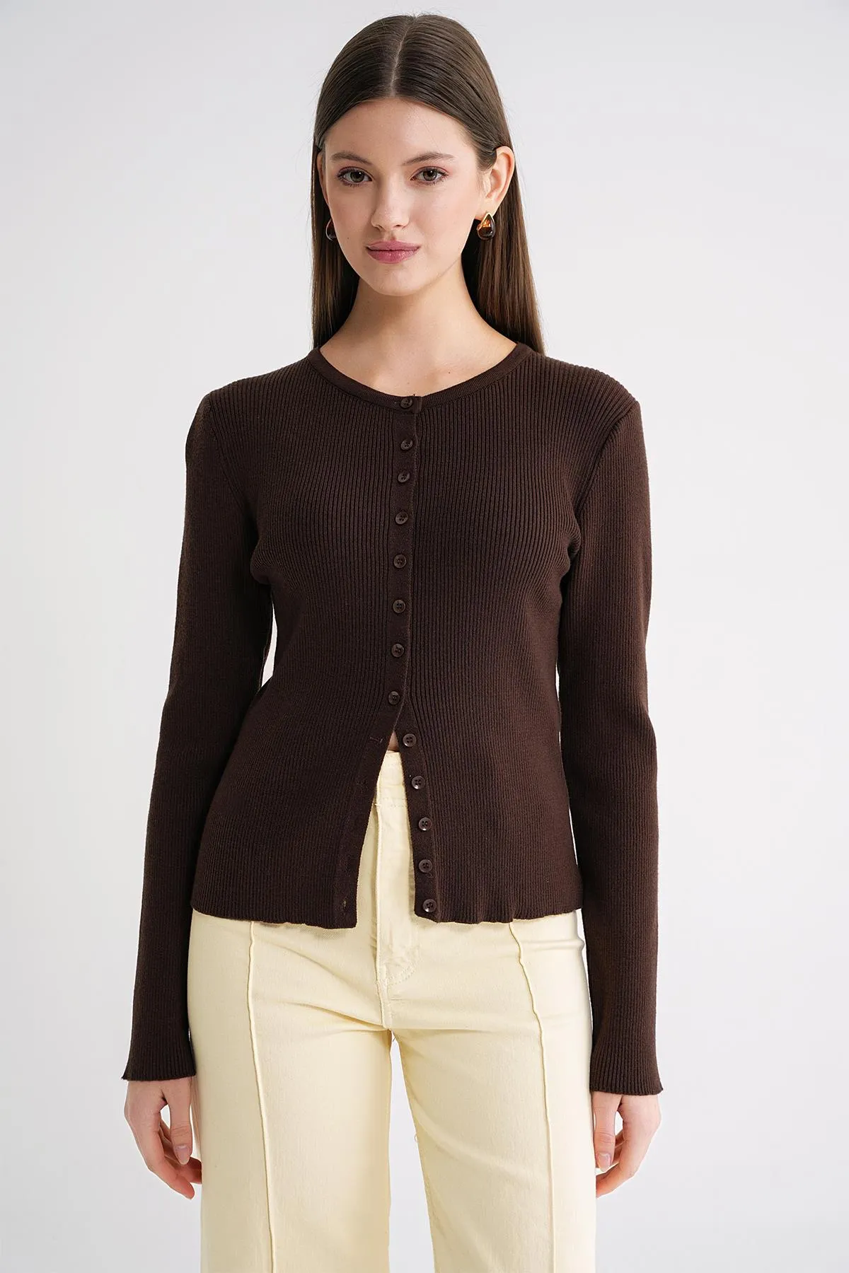 كارديجان نسائي محبوك بأكمام طويلة وملمس ناعم منسوج، بياقة على شكل حرف V وأزرار أمامية، يجمع بين الراحة والأناقة الكاجوال. مثالي للارتداء فوق القمصان أو البلوزات.