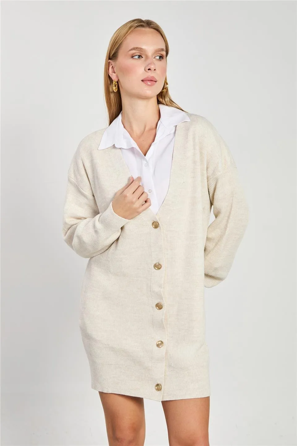 كارديجان محبوك أنيق بتصميم أكتاف منخفضة وتفاصيل فيونكة تضفي لمسة أنثوية ناعمة على أي إطلالة. يأتي بحياكة مريحة وناعمة توفر ملمسًا دافئًا وتنفسًا مثاليًا للاستخدام في المواسم المعتدلة.