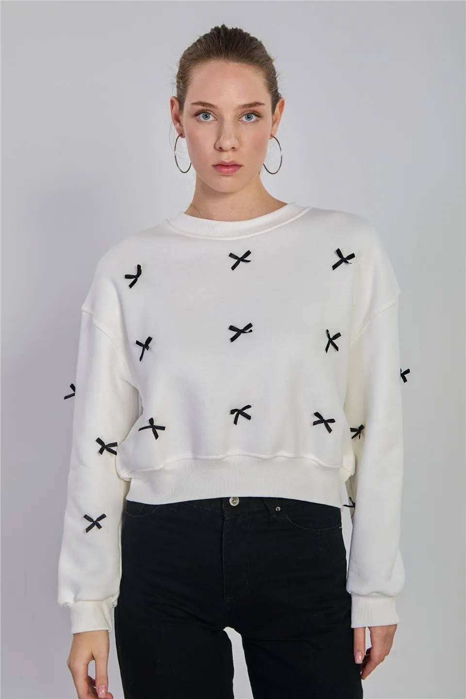 سويت شيرت نسائي بياقة دائرية مع تفاصيل حلقات، مصنوع من قماش ناعم لتوفير راحة وإطلالة أنيقة يوميًا.