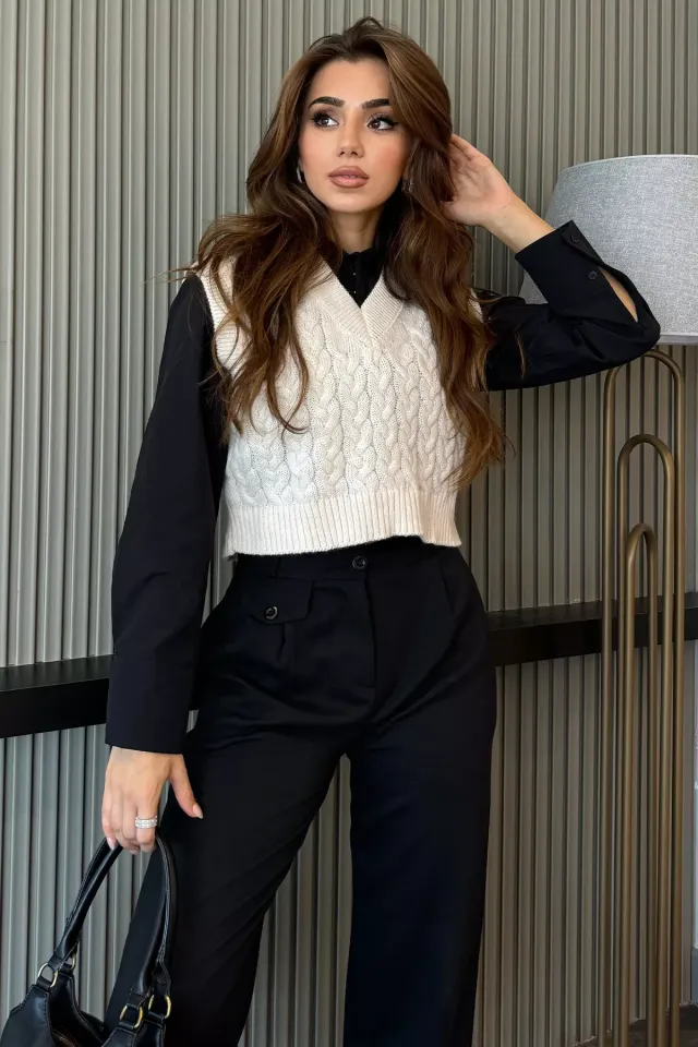 كنزة تريكو مخرمة قصيرة بتفصيل مموج - Beyond Store