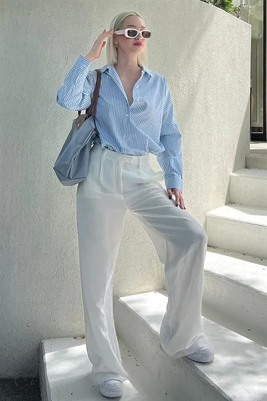 بنطلون نسائي محبوك بخصر مرتفع وساق واسعة يوفر راحة وحرية حركة بفضل القماش الناعم والقابل للتنفس. مثالي للاستخدام اليومي أو للارتداء المنزلي، يجمع بين الأناقة والعملية.