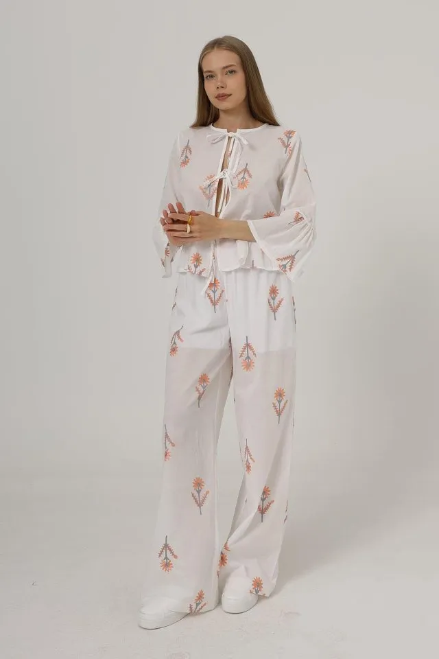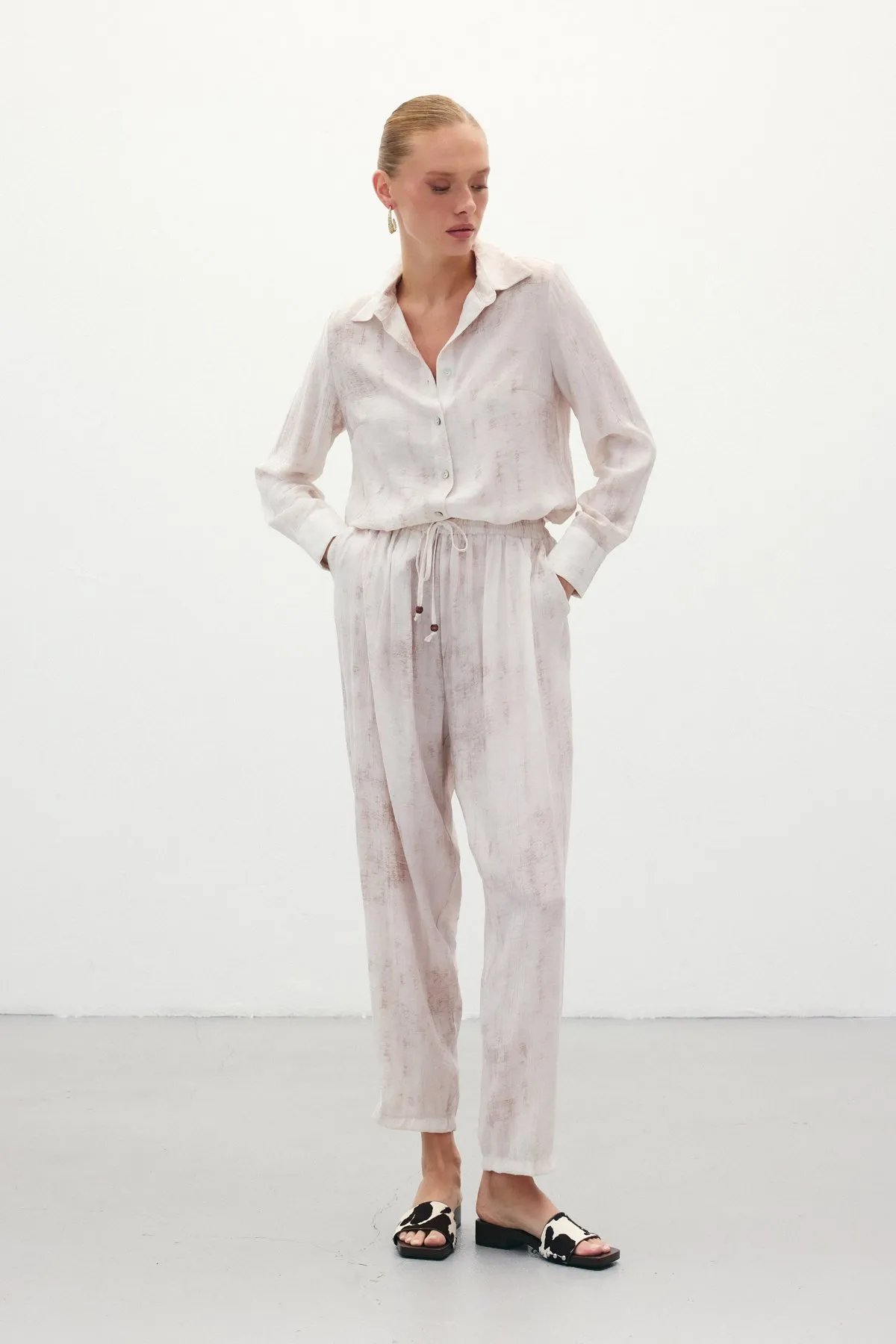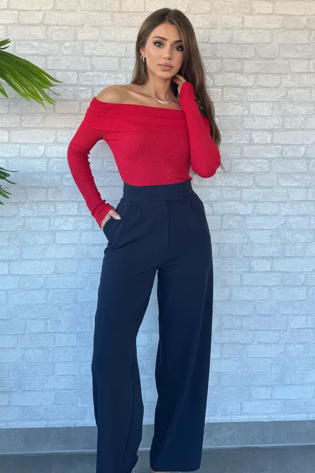 بنطلون نسائي محبوك بخصر مرتفع وساق واسعة يوفر راحة وحرية حركة بفضل القماش الناعم والقابل للتنفس. مثالي للاستخدام اليومي أو للارتداء المنزلي، يجمع بين الأناقة والعملية.