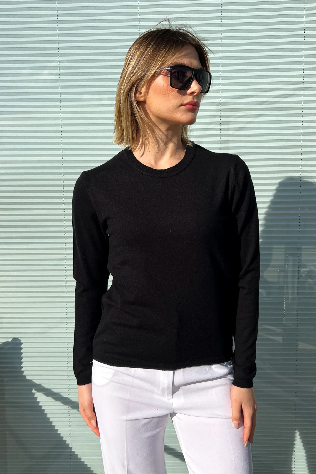 كنزة محبوكة شيك بتفاصيل لؤلؤ وحجر حول الياقة لِلوك شتوي ناعم وعصري.