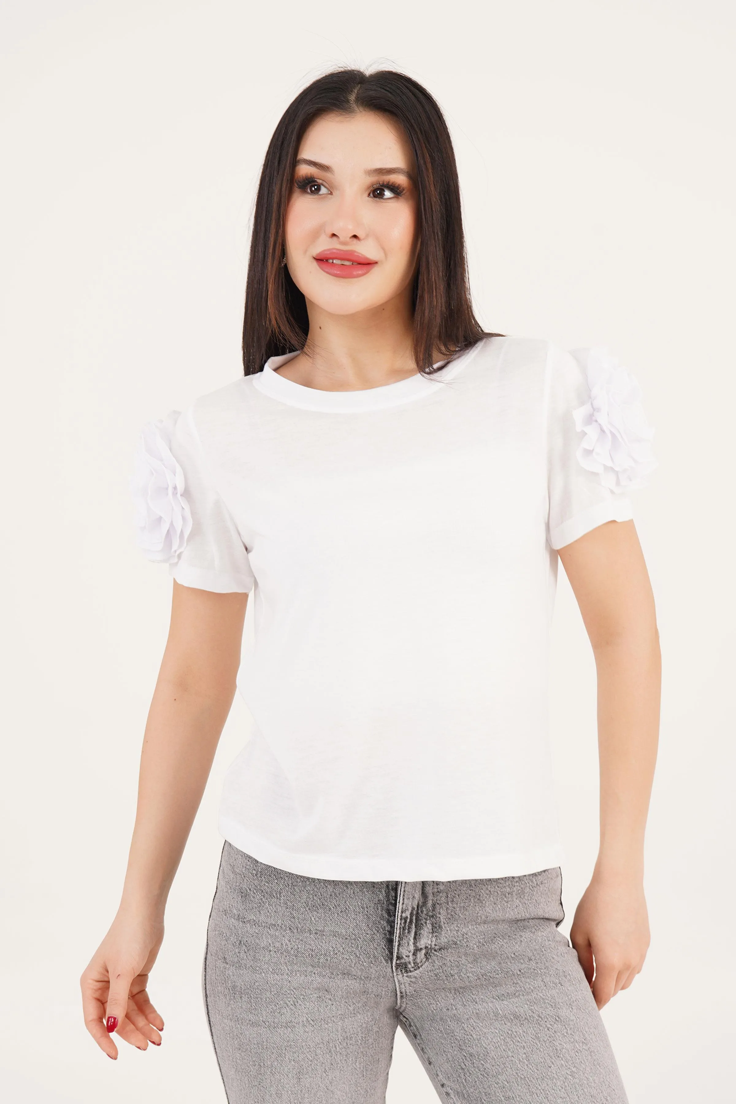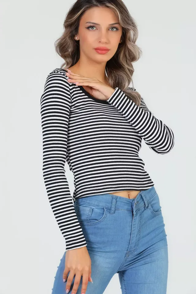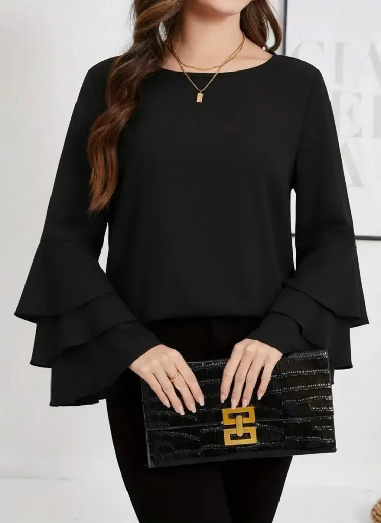 بلوزة محبوكة نسائية بياقة مادونا مع تفاصيل كشكشة ناعمة، تمنح إطلالة أنثوية وأنيقة، مصنوعة من خامة خفيفة وناعمة، مثالية للإطلالات اليومية أو الطبقات الأنيقة.