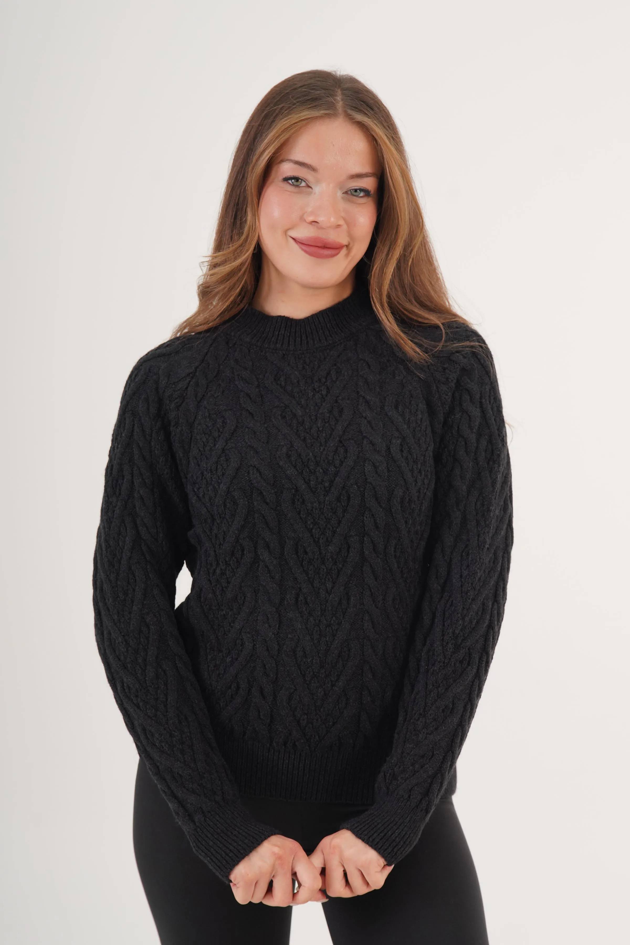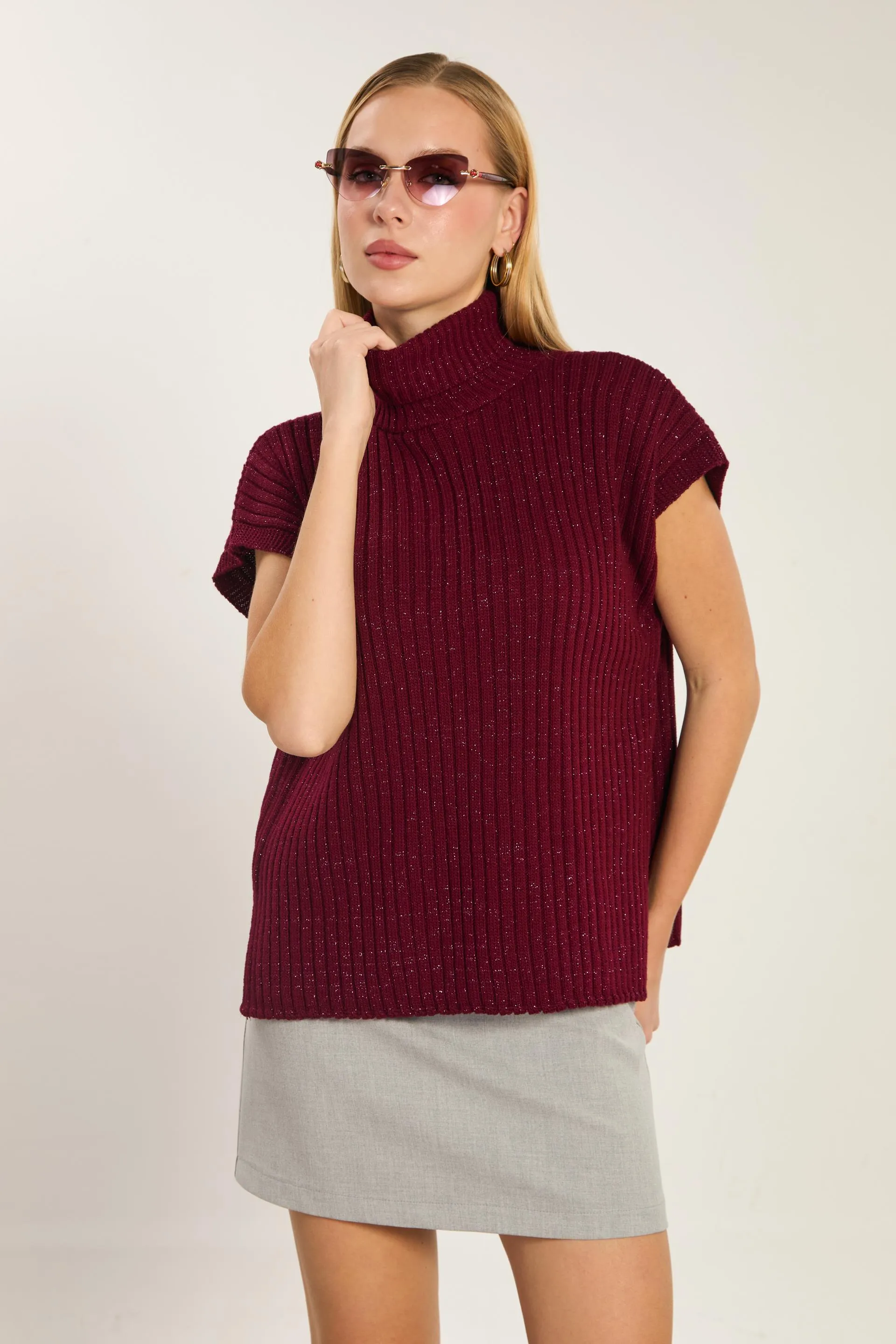 كنزة نسائية بياقة عالية وقماش محبوك بنقشة مميزة - Beyond Store
