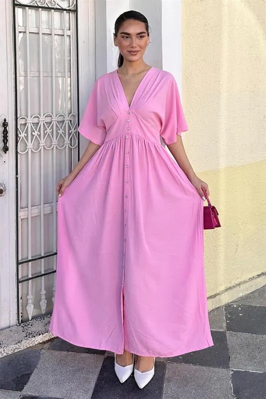 فستان قميص بأكمام طويلة وقصة تونيك مريحة مع إغلاق أزرار مخفية لِلوك يومي بسيط ومرتب.